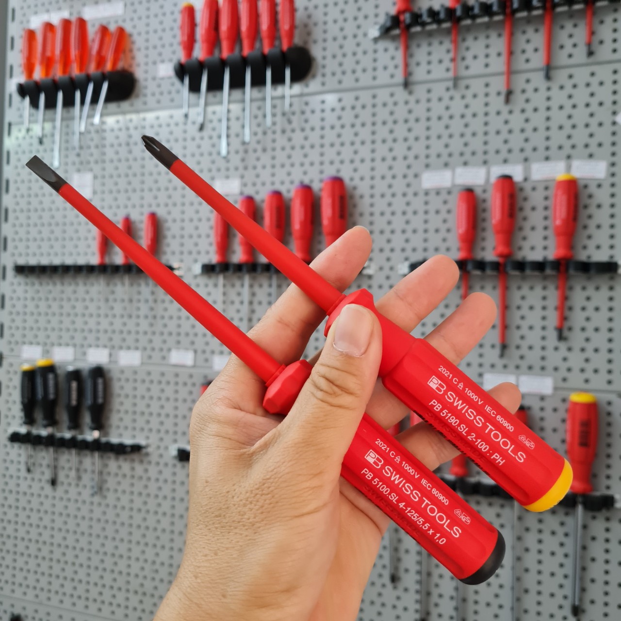 Tua vít cách điện PB Swiss Tools được VDE (Viện Cơ Điện Đức) kiểm định và khuyên dùng ở nguồn điện dưới 1.000 Volt AC theo tiêu chuẩn IEC/EN 60900. An toàn tuyệt đối khi thao tác trên điện sống.