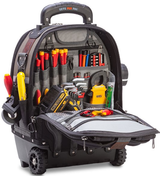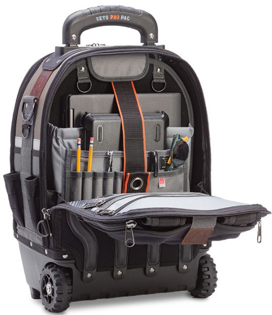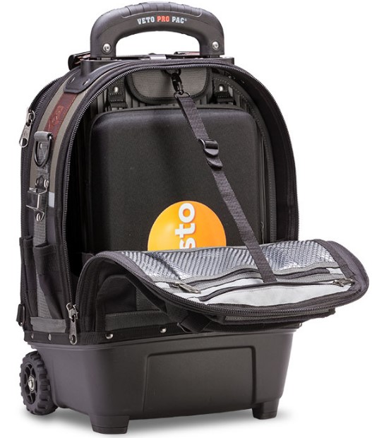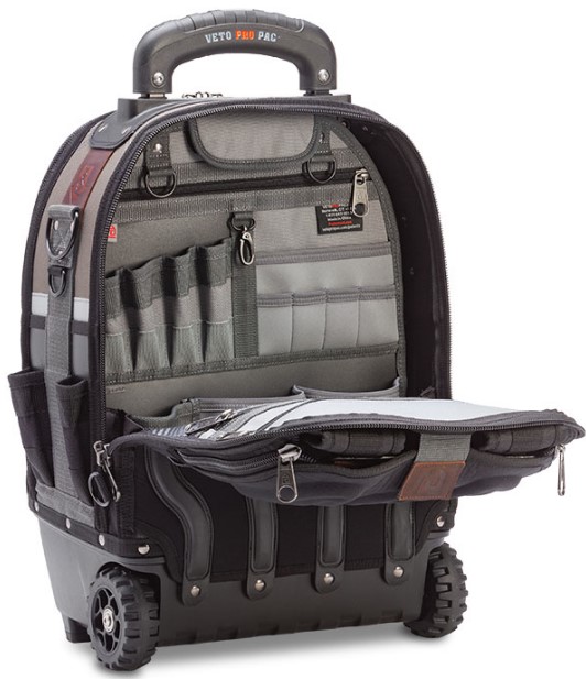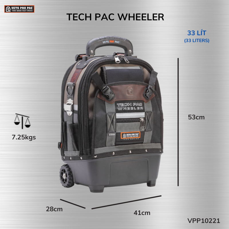Veto Tech Pac Wheeler dung tích 33 lít nằm trong dòng ba lô Tech Pac bán chạy nhất. Thừa hưởng đặc trưng ngăn bên trong có thể tháo ra & có các ngăn khác thay thế, Ba lô có bánh xe kéo Tech Pac Wheeler giúp mang thêm nhiều dụng cụ đi xa, giúp thoải mái & tiện dụng hơn trong công việc