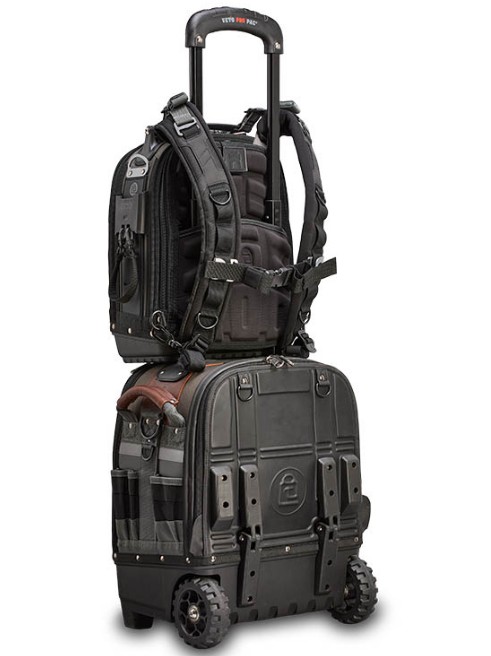 Đai Gài Vào Ba Lô Kéo (Trolley handle pass-through): Mặt lưng có thiết kế khe luồn vừa vặn với tay kéo vali hoặc xe đẩy, cực kỳ tiện lợi khi di chuyển xa tại các nhà xưởng, công trình lớn (Bấm vào hình)