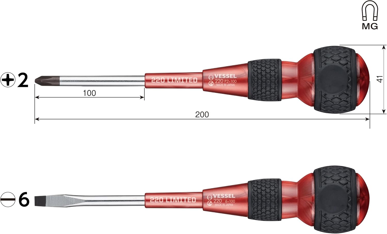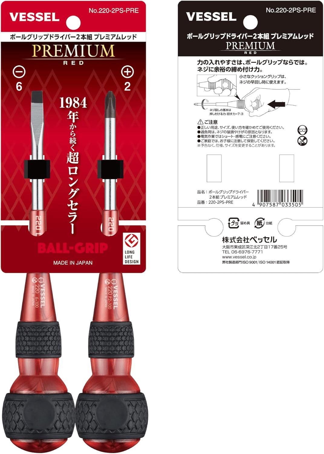 Bộ Tua Vít BallGrip VESSEL 220-2PS-PRE Màu Đỏ