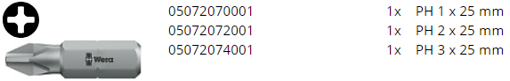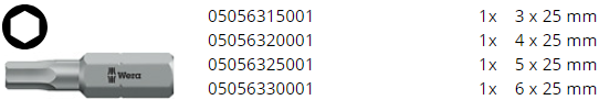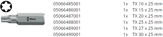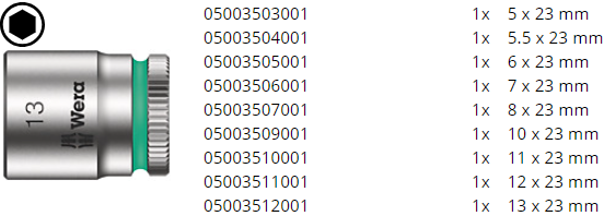 • 9 Đầu khẩu Wera Zyklop 8790 HMA, 1/4" gồm các kích cỡ và chiều dài sau: