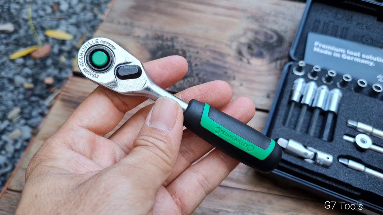 - Chức năng Quick release giúp không làm rơi Khẩu vặn. Tháo mở bằng cách nhấn chốt xanh trên đầu rất tiện lợi
