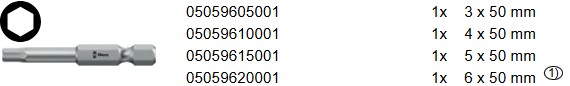 - 4 Mũi bit Lục giác Wera 840/4 Z: 3, 4, 5, 6mm