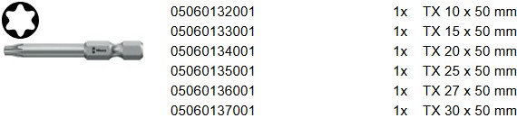 - 6 Mũi bit Hoa thị Wera 867/4 Z TORX® : T10, T15, T20, T25, T27, T30