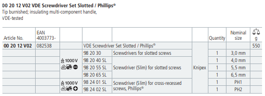 (Set of Screwdriver Knipex 00 20 12 V02 VDE Slotted / Phillips®)