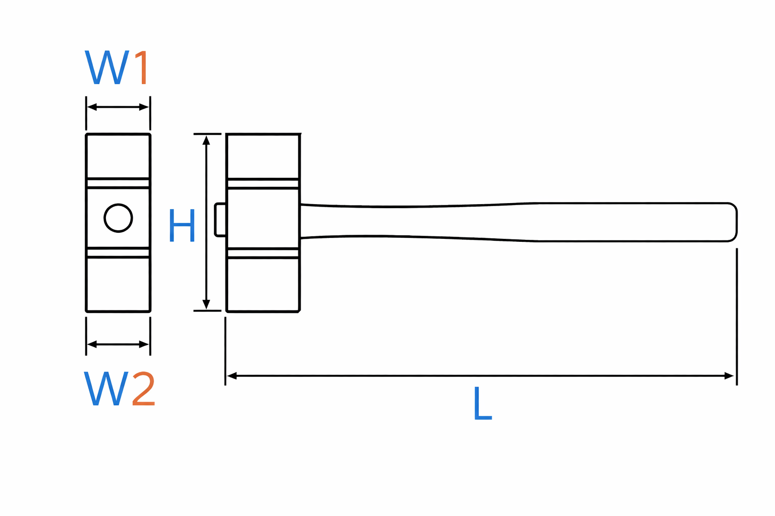 Chiều cao tính từ đỉnh của 2 đầu búa: 100mm