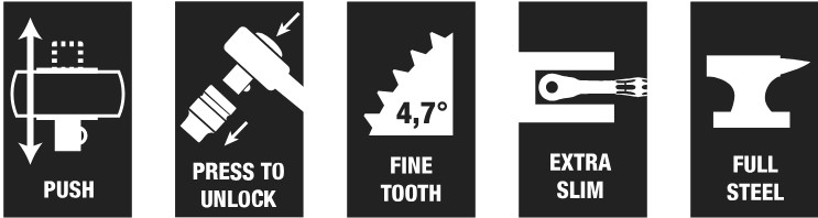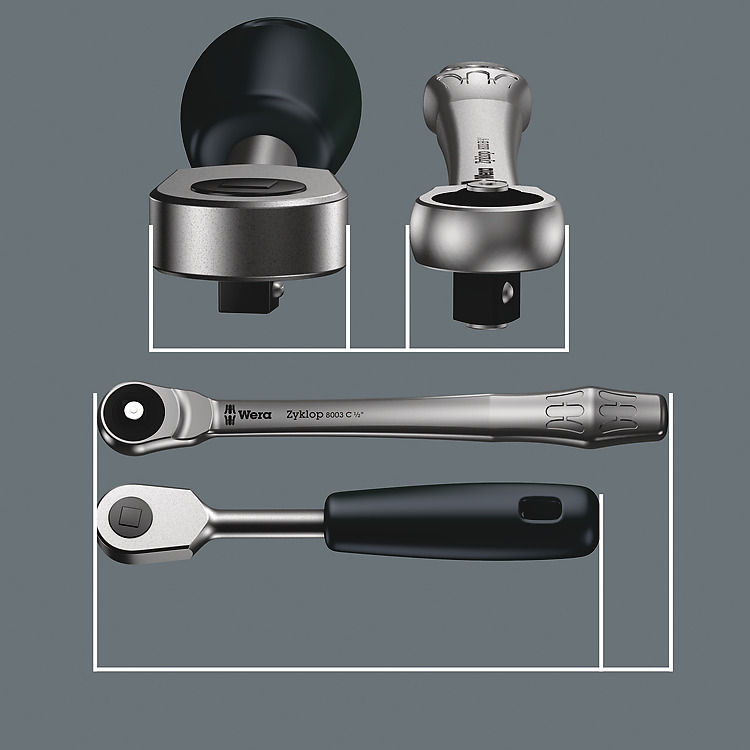 Thiết kế thon gọn (slim) giúp thao tác trong góc nhỏ hẹp tiện lợi - hình ảnh bên dưới so sánh Wera Full Metal với cần siết thương hiệu khác