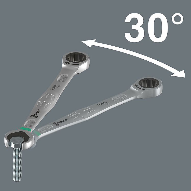 - Cờ lê Joker có đầu tròng nghiêng 15° và lẫy gạt chuyển hướng