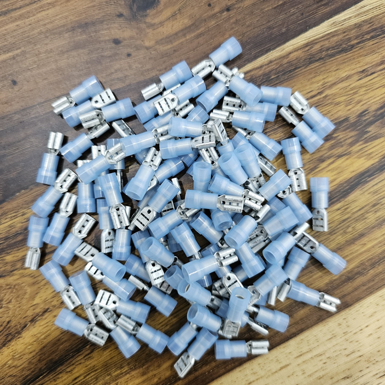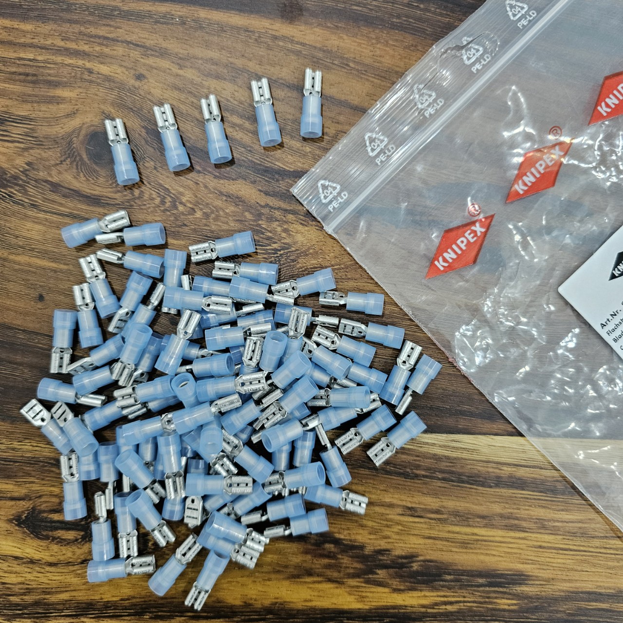 - 1.5-2.5 mm² (cos màu xanh): sau khi bấm có 2 chấm in trên chân cos