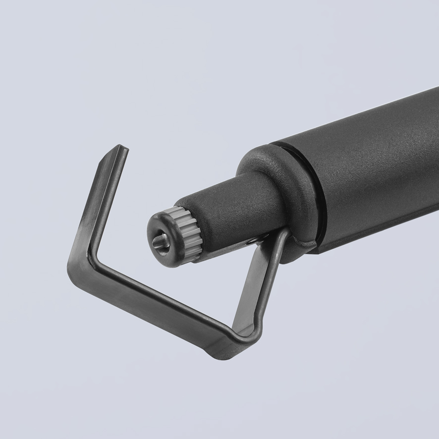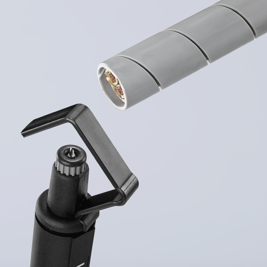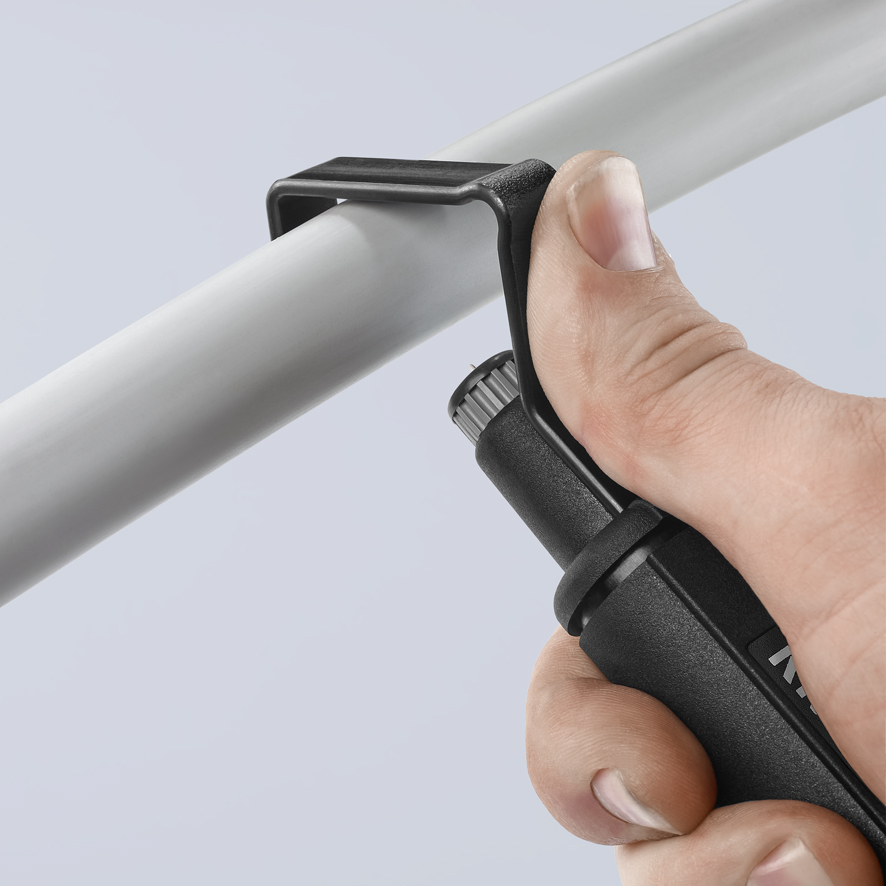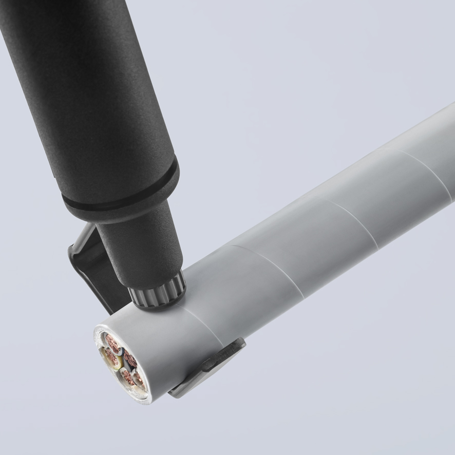 Bước 3 và Hoàn Tất: dùng ngón tay để đẩy Nắp Chụp Knipex một góc 90 độ. Sau đó kéo dụng cụ để cắt cáp