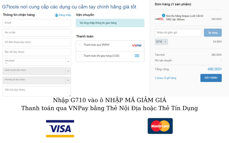 Khi đặt hàng từ website G7 Tools, phần Nhập Mã Giảm Giá, quí khách nhập G710 để được chiết khẩu 10% áp dụng đối với 3 thương hiệu đề cập trên. Hoặc nhắn tin trên Fanpage G7 Tools, nhân viên shop sẽ tự động giảm 10% khi gửi hàng. Áp dụng cho đơn hàng có giá trị lớn hơn 350.000 đ và free ship toàn quốc.