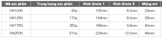 | Mã Hàng | Chiều Dài | Ngàm Mở | Cắt Kẽm |