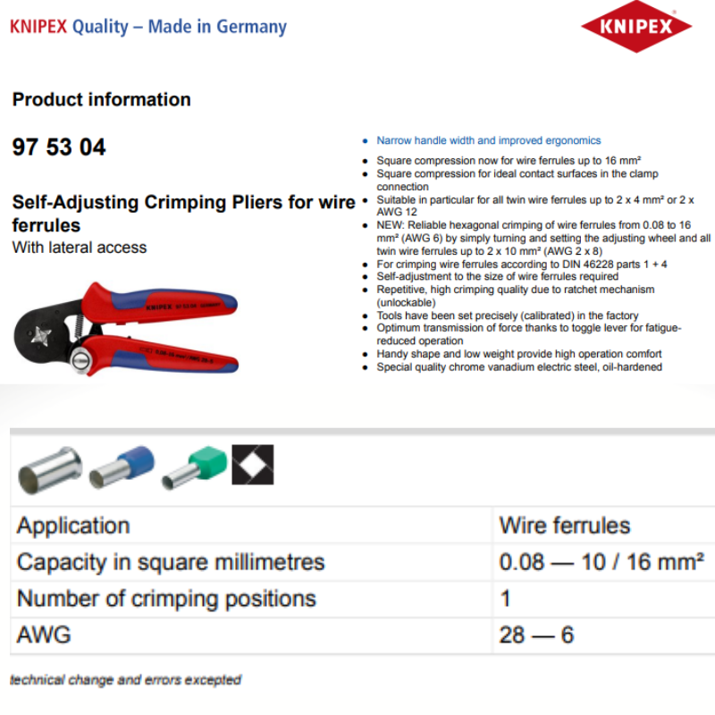 - For crimping wire ferrules according to DIN 46228 parts 1 + 4