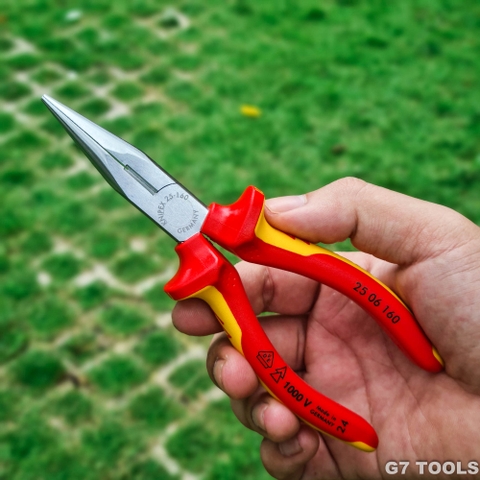 Kìm Nhọn Knipex 25 06 160 Mũi Đàn Hồi, Lưỡi Cắt 61 HRC, Dài 160mm Cách Điện 1000 volt