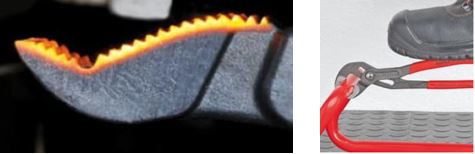Để kìm bám chắc vào vật liệu, ngàm không trượt khi siết mạnh; răng kẹp tôi cứng là một trong những điểm khác biệt lớn. Kìm nước Cobra Knipex có răng kẹp tôi cứng đến 61 HRC, rất cứng. Đó là lý do khi kẹp vào vật liệu, bạn có thể đứng lên cán cầm mà không bị “sập”.
