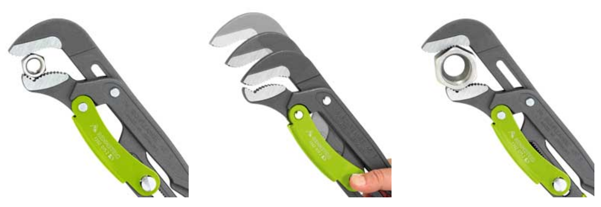- Điều chỉnh ngàm kẹp bằng cách bấm vào nút Push, sau đó di chuyển tay cầm dưới để mở đúng kích cỡ yêu cầu
