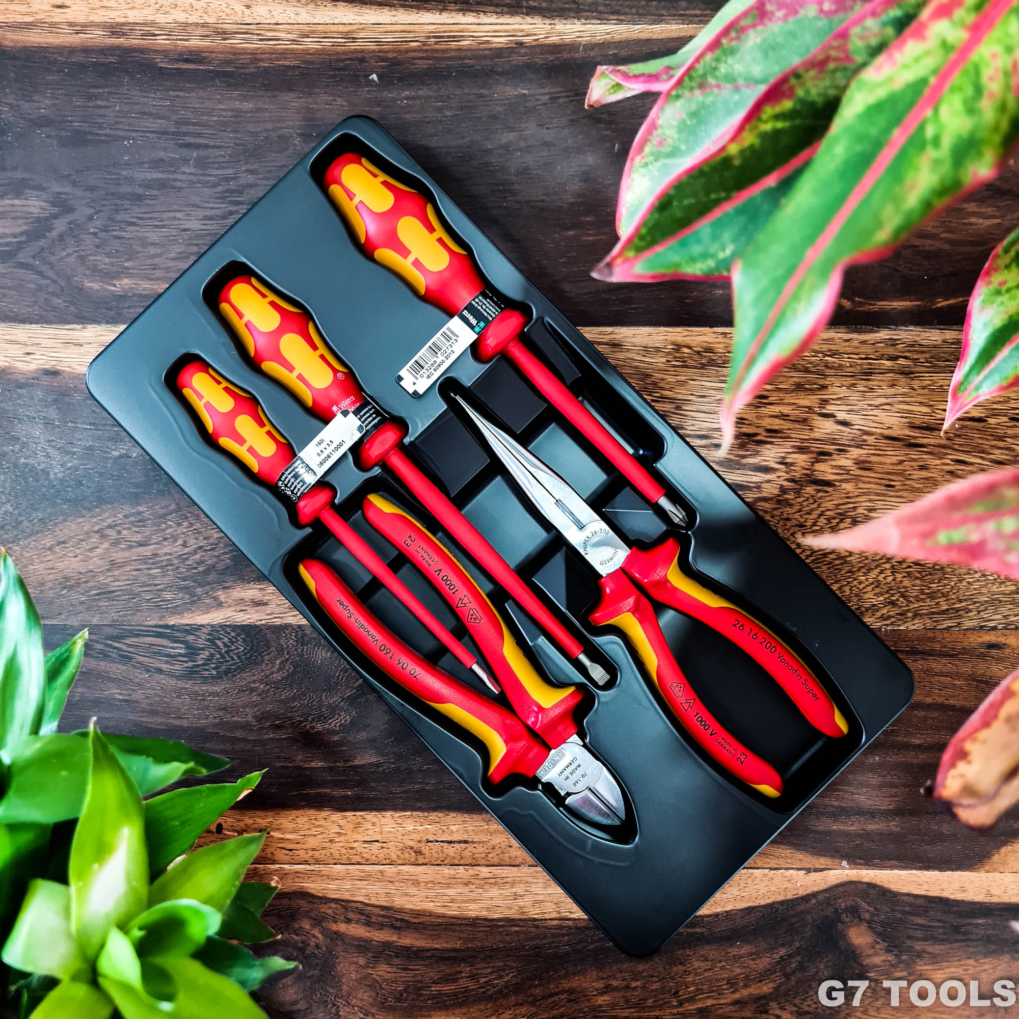- Tools VDE-tested in conformance to DIN EN/IEC 60900 1000V, pliers chrome-plated; handles with multi-component covers
