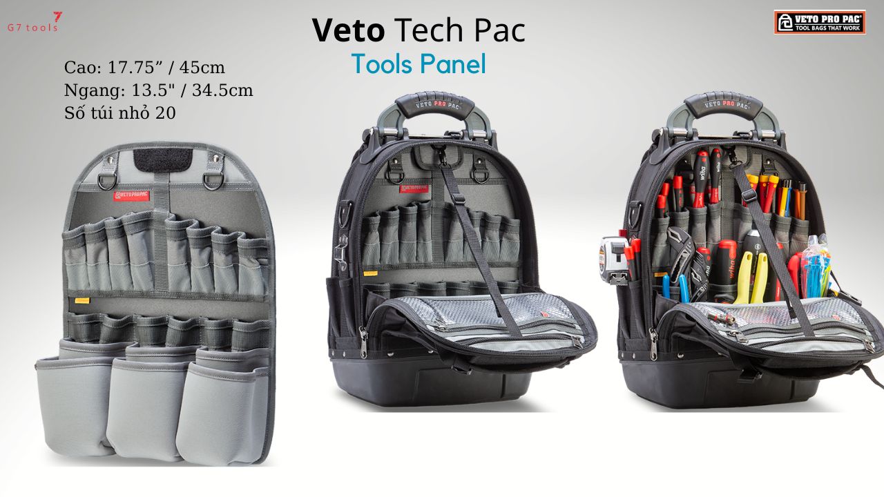 G7 Tools nhập khẩu chính ngạch túi VETO PRO PAC. Giá đã bao gồm thuế VAT, miễn phí vận chuyển trên toàn quốc. Bảo hành theo tiêu chuẩn của nhà sản xuất.