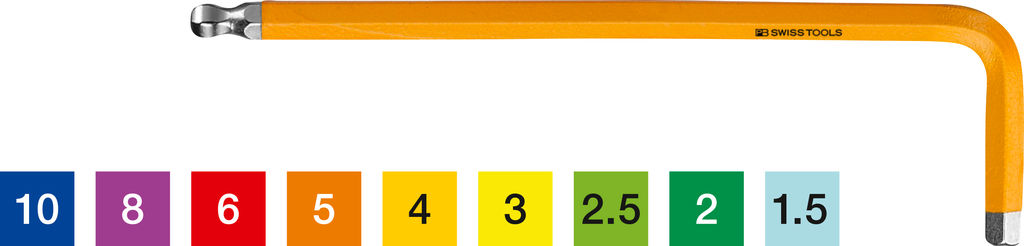 Bộ PB 212.LH-6 RB bao gồm 7 cây lục giác đầu bi (ball-end hex key) hệ mét. Phần tay dài (long arm) có đầu bi tròn (ball point) mở nghiêng góc 30°, tiện lợi mở ốc trong không gian hẹp, vị trí góc. Các cây lục giác được cài trong clip nhựa tiện dụng màu đỏ.