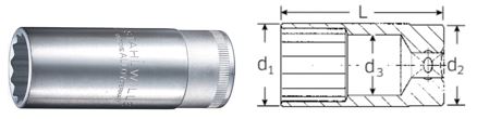 G7 Tools nhập khẩu loại Đầu Khẩu Dài size ½” có 12 Cạnh (Bi-Hexagon). Loại 12 Cạnh tương tự như loại 6 Cạnh nhưng việc lắp vào ốc dễ dàng và nhanh chóng hơn. Bản extra deep (như hình dưới) có chiều dài 83mm, độ dày rất mỏng giúp thao tác dễ trong vị trí khó.