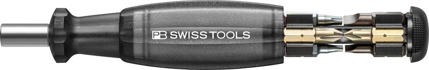 Chiếc PB 6464.Black có phần phần mũi thon gọn được chế tác từ thép không gỉ cao cấp. Mũi liên kết với bits bằng nam châm. Thay đổi bits dễ dàng và nhanh chóng. Phần tay cầm cũng là nơi chứa 8 Bits C6 1/4"