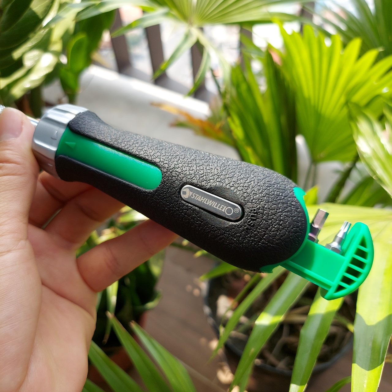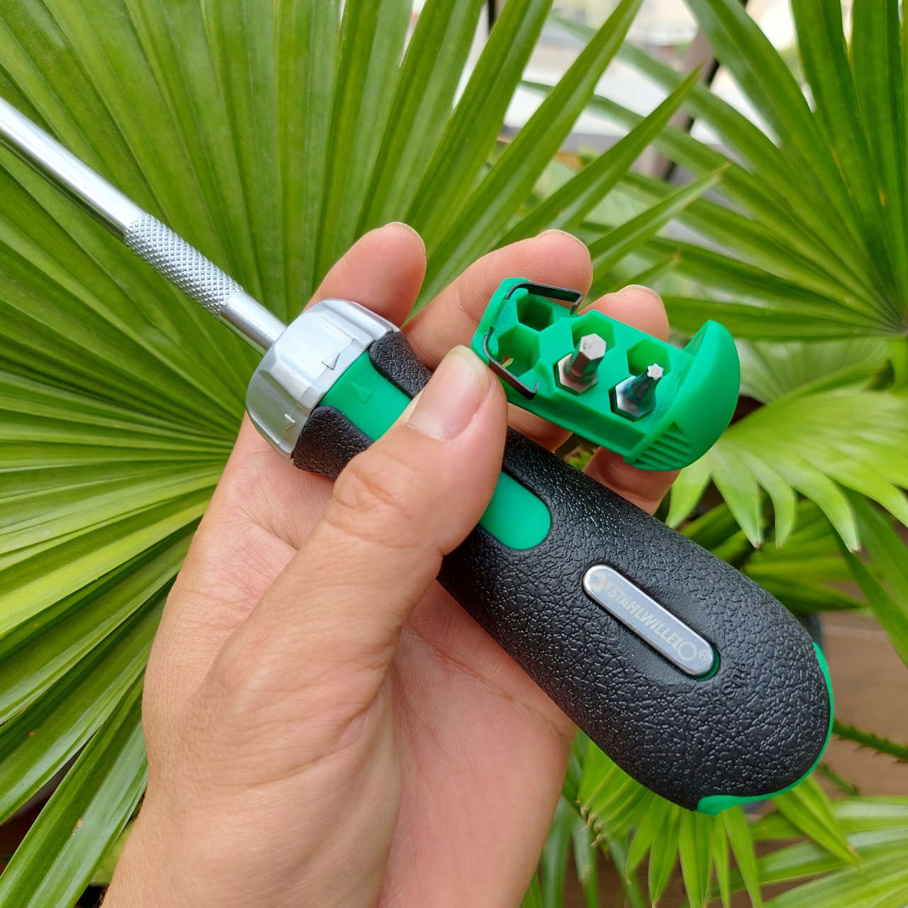 - Chứa được tối đa 6 mũi bits trong khay chứa ở tay cầm loại 1/4" C6.3 (Tua vít tự động Stahlwille không bao gồm Mũi bits. Mũi bits chiều dài 25mm cần được mua riêng)