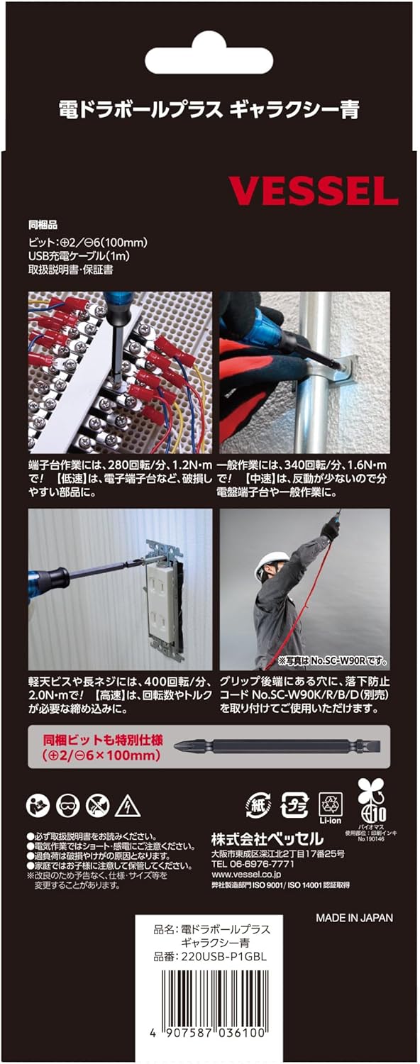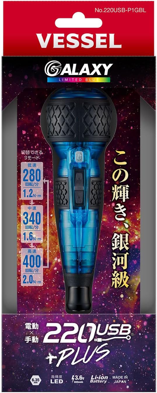 Tua vít điện Vessel 220USB-P1GBL là phiên bản đặc biệt, cao cấp, kết hợp hiệu suất điện tử với thiết kế công thái học và màu "Galaxy" độc đáo.