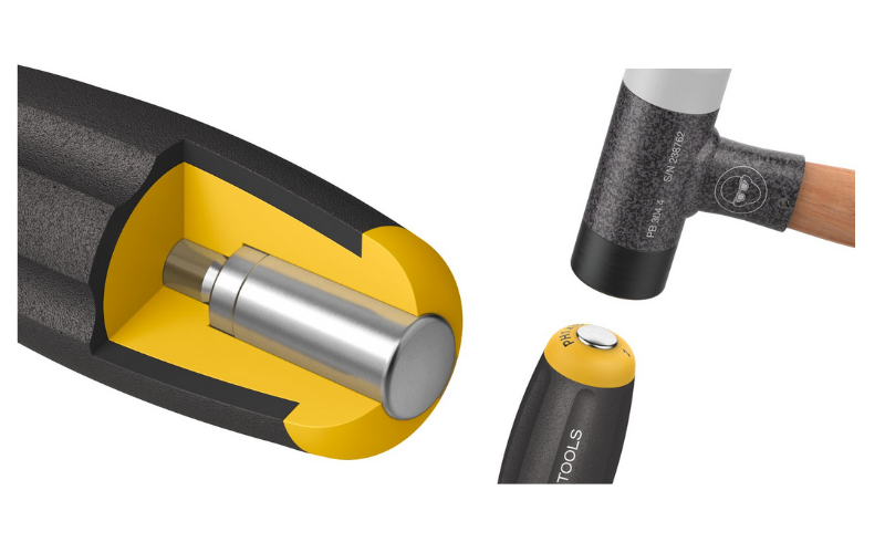 - Tua vít đóng PB Swiss Tools được chế tác từ hợp kim thép lò xo đặc biệt (special alloy based on spring steel), tôi cứng gia cường tạo độ đàn hồi vượt trội. Chịu được lực đóng lớn từ búa (khuyên dùng búa khoảng 300 gam)