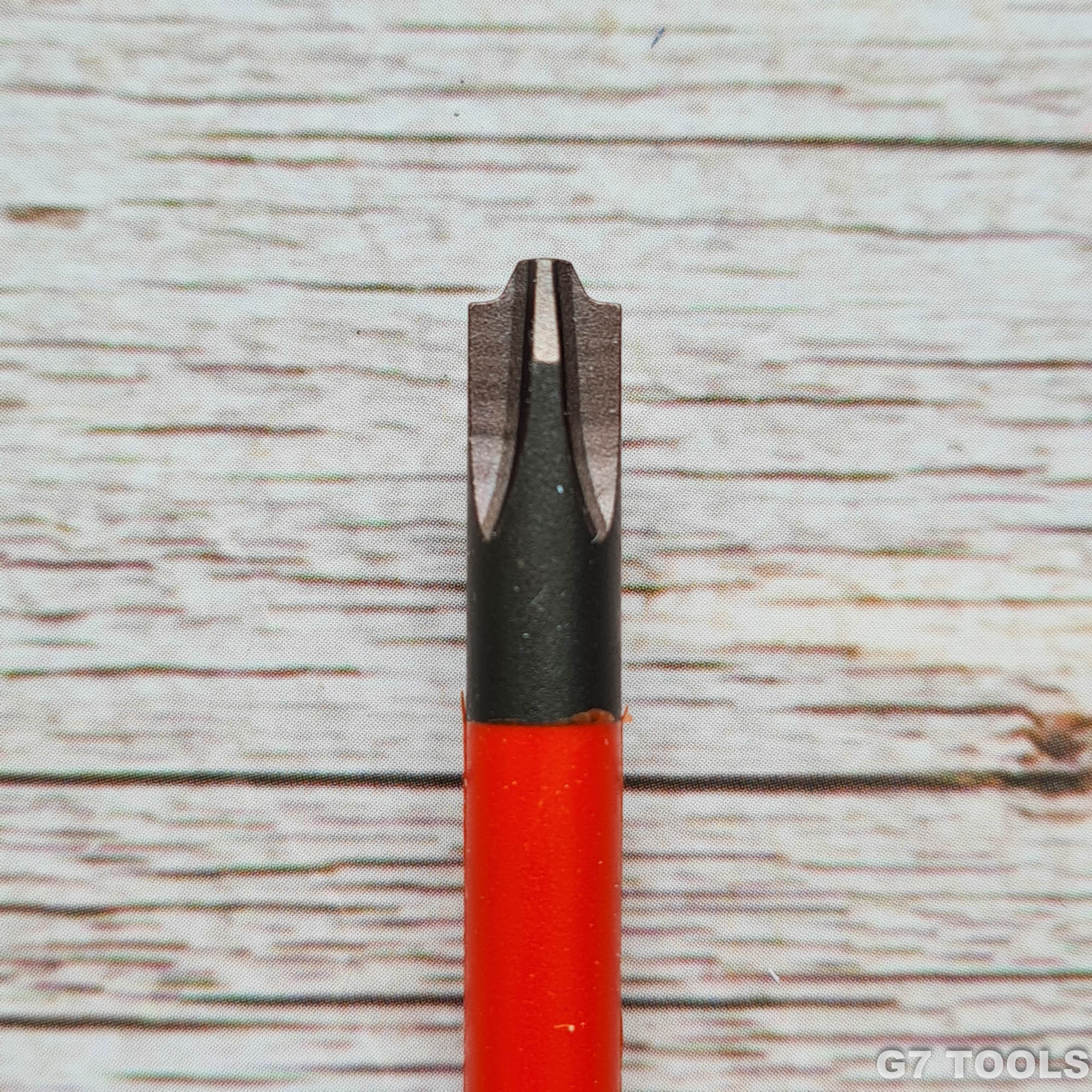 - Mũi slim có phần thân nhựa cách điện và phần mũi đen bằng nhau, không gồ ra. Khi đưa vào khe hẹp, mũi tua vít không bị cấn.