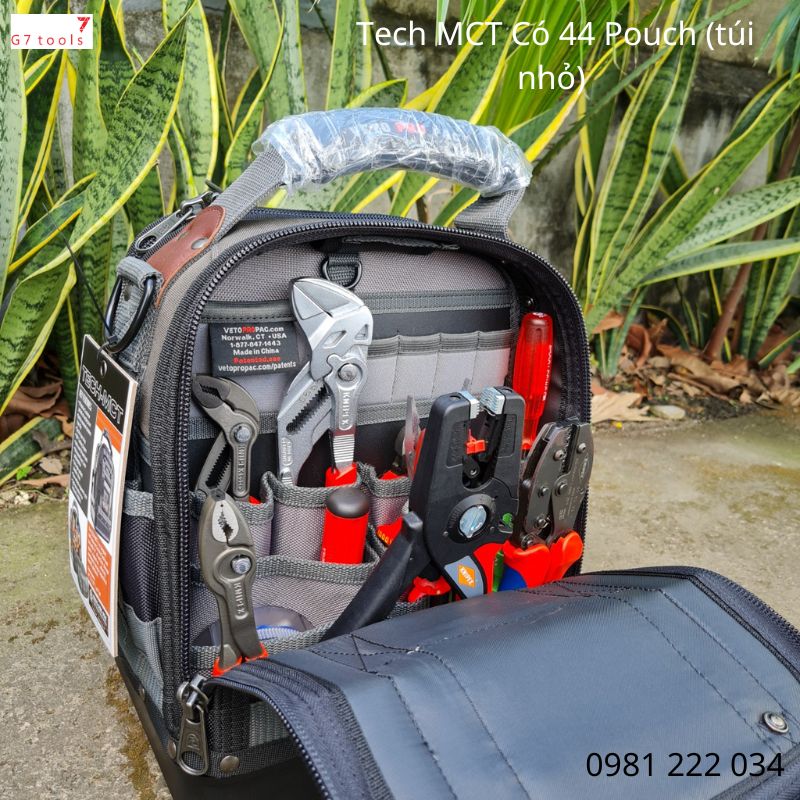 44 túi nhỏ (pockets) & 2 ngăn lớn để chứa dụng cụ cầm tay, thước đo, máy khoan và các phụ kiện khác giúp túi VETO Tech MCT trở thành lựa chọn cho thợ điện, thợ bảo trì, lắp đặt... Túi có D-rings, chỗ chứa bits, thẻ cắm USB, ... Quai xách thiết kế thân thiện tay cầm và dây đeo 3" cho cảm giác thoải mái khi đeo đến 50 chi tiết dụng cụ lớn nhỏ.