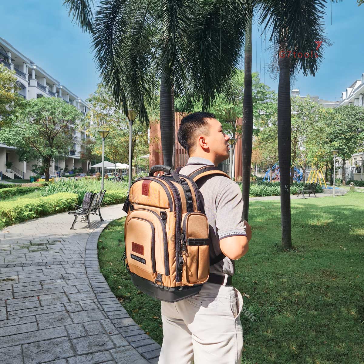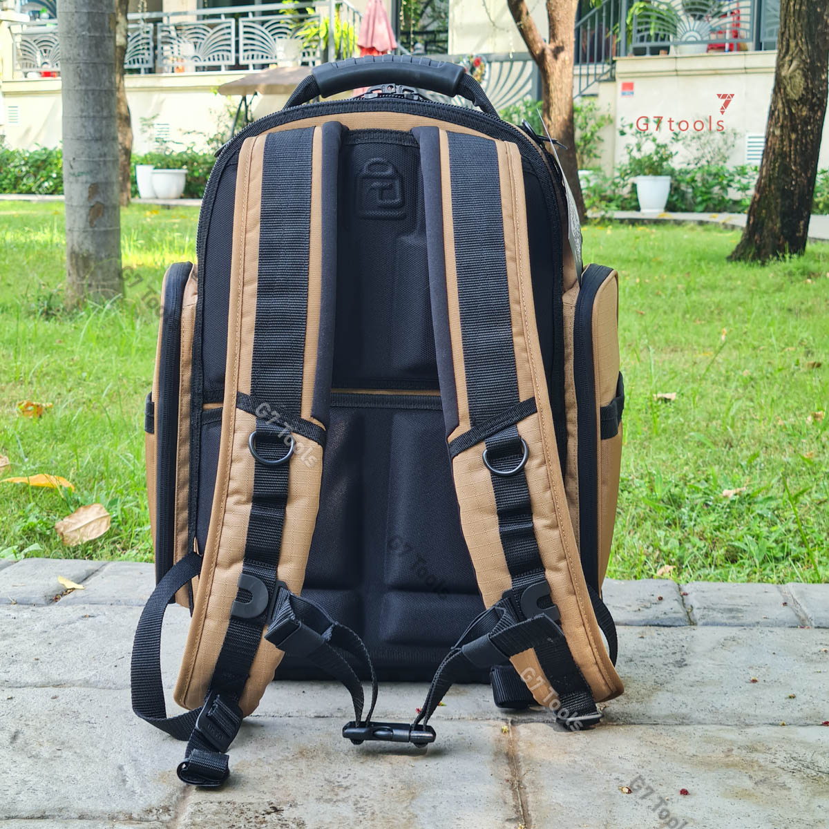 Phía trên là một ngăn có khóa kéo, được thiết kế bán cứng để bảo vệ kính mát hoặc kính bảo hộ. Ngoài ra, còn có hai ngăn có khóa kéo phía trước với nhiều ngăn nhỏ bên trong để bạn dễ dàng sắp xếp đồ công nghệ hoặc đồ dùng cá nhân.