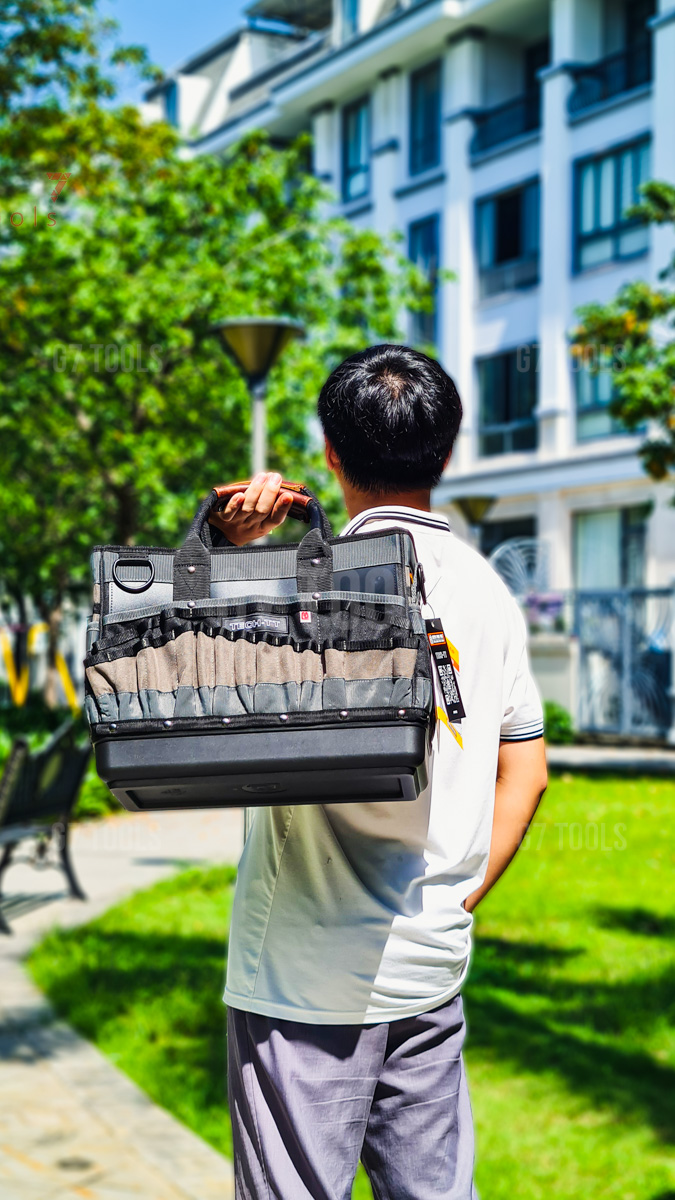Bảo vệ dụng cụ tối đa: Với đế đúc cứng, dụng cụ của bạn sẽ luôn an toàn dù bạn có đặt túi trên nền đất ẩm ướt, dính dầu mỡ hay nhiều mảnh vụn kim loại. Các ngăn đựng có kích thước khác nhau giúp bạn bảo vệ cả những dụng cụ dễ vỡ như đồng hồ đo điện, máy đo áp suất hay các loại thước laser