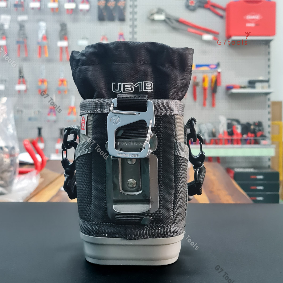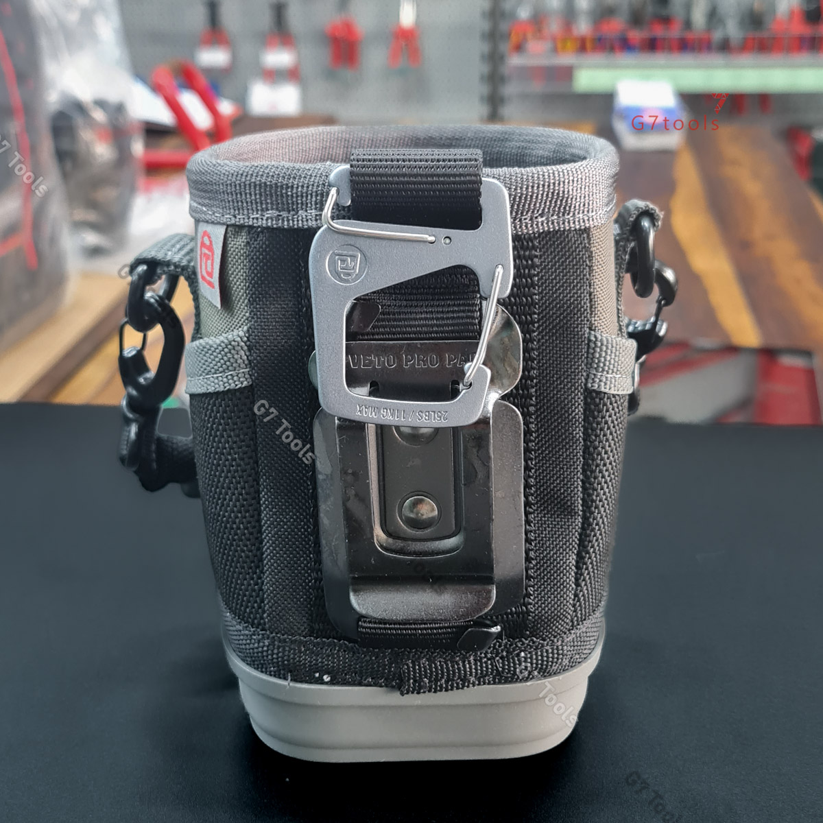 Ngoài ra, túi còn có vị trí kẹp thước cuộn, nhiều ngăn ngoài và các tùy chọn gắn linh hoạt như belt clip, móc đa năng giúp dễ gắn lên túi lớn hơn hoặc treo lên thang.