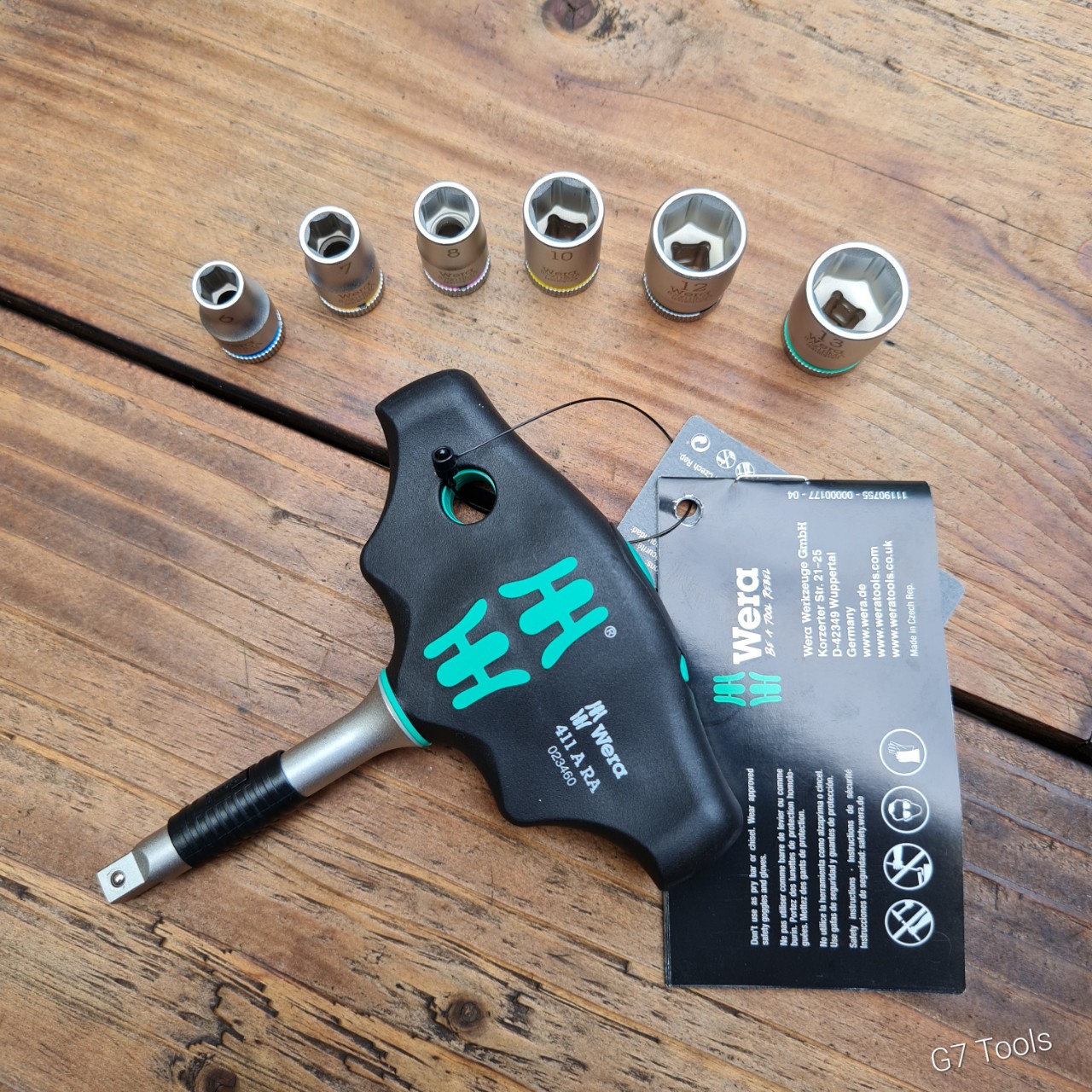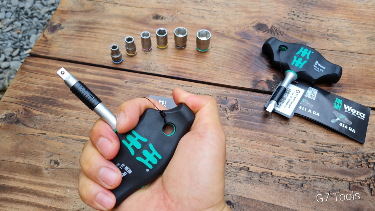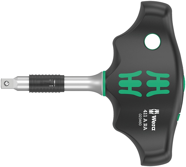 Cùng dòng sản phẩm 411 A RA, Wera còn sản xuất dòng Tay Cầm Chữ T Gắn Khẩu Wera 416 RA 05023461001. Sử dụng mũi btis 1/4"