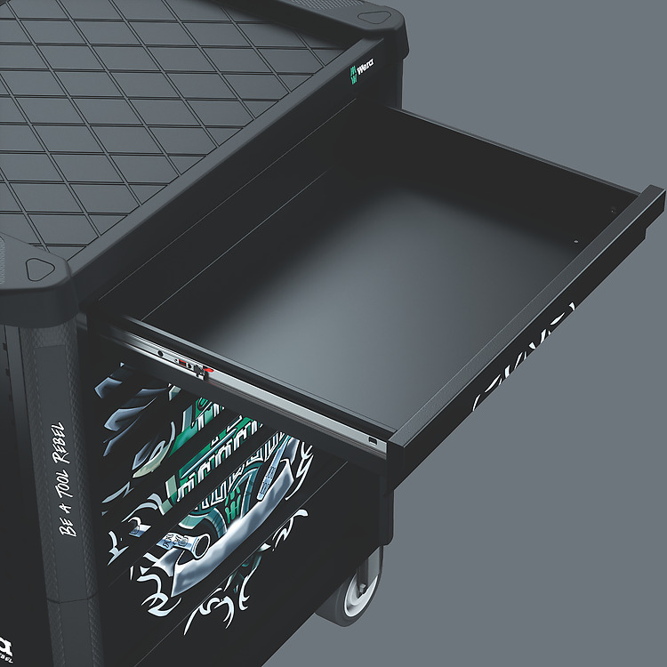 Wera Tool Roller nổi bật với chất liệu bền chắc, khả năng chống thấm nước và chống mài mòn cao, giúp bảo vệ tối ưu các dụng cụ bên trong khỏi tác động của môi trường. Ngoài ra, các khóa kéo, quai cầm, và bánh xe được thiết kế chịu lực tốt, giúp người dùng dễ dàng di chuyển trên nhiều loại địa hình khác nhau mà không lo bị hư hỏng.