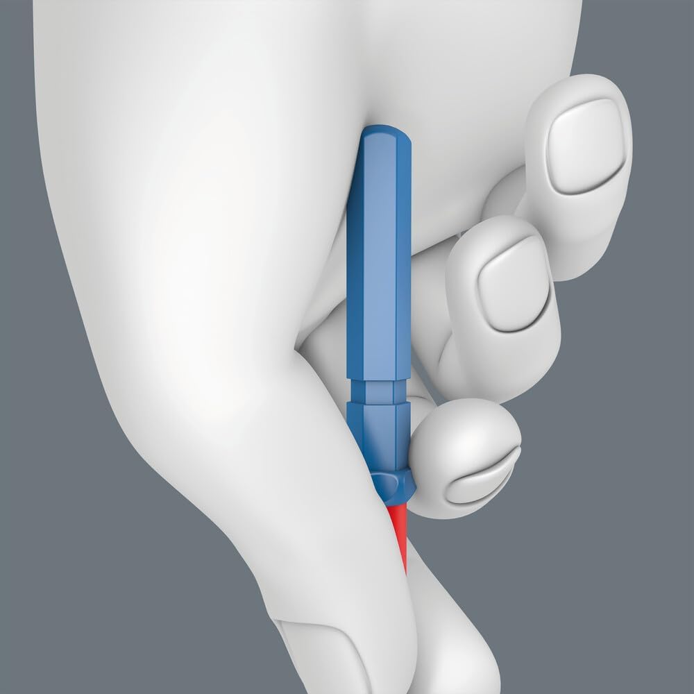 Hệ thống tay cầm/ lưỡi vít có thể thay thế: Cho phép thay đổi lưỡi vít nhanh chóng mà không cần dụng cụ đặc biệt, tối ưu cho nhiều ứng dụng khác nhau khi kết hợp với tay cầm Kraftform Kompakt phù hợp (như 817 VDE, 7400 VDE, 837 i RA, 827 T i).