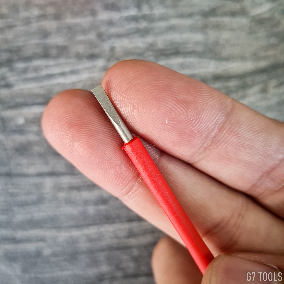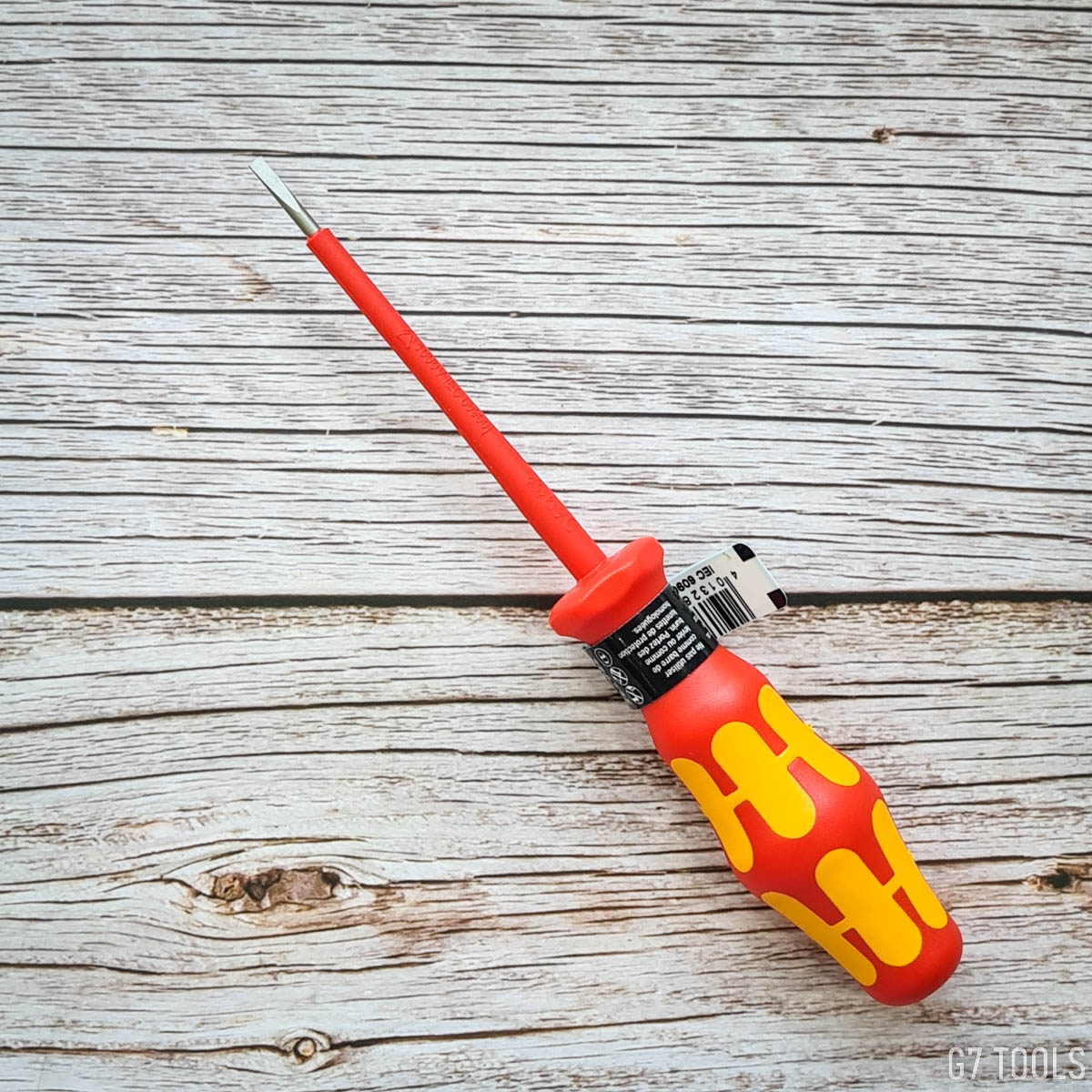 Wera VDE Insulated Slotted Screwdriver: Phù hợp với ốc vít đầu dẹt (Slotted), mang lại sự chính xác và lực siết tối ưu, giảm thiểu tình trạng làm trầy xước bề mặt vít. Ở Việt Nam, chúng ta còn gọi là Mũi Hai cạnh, Mũi dẹt hay mũi dẹp
