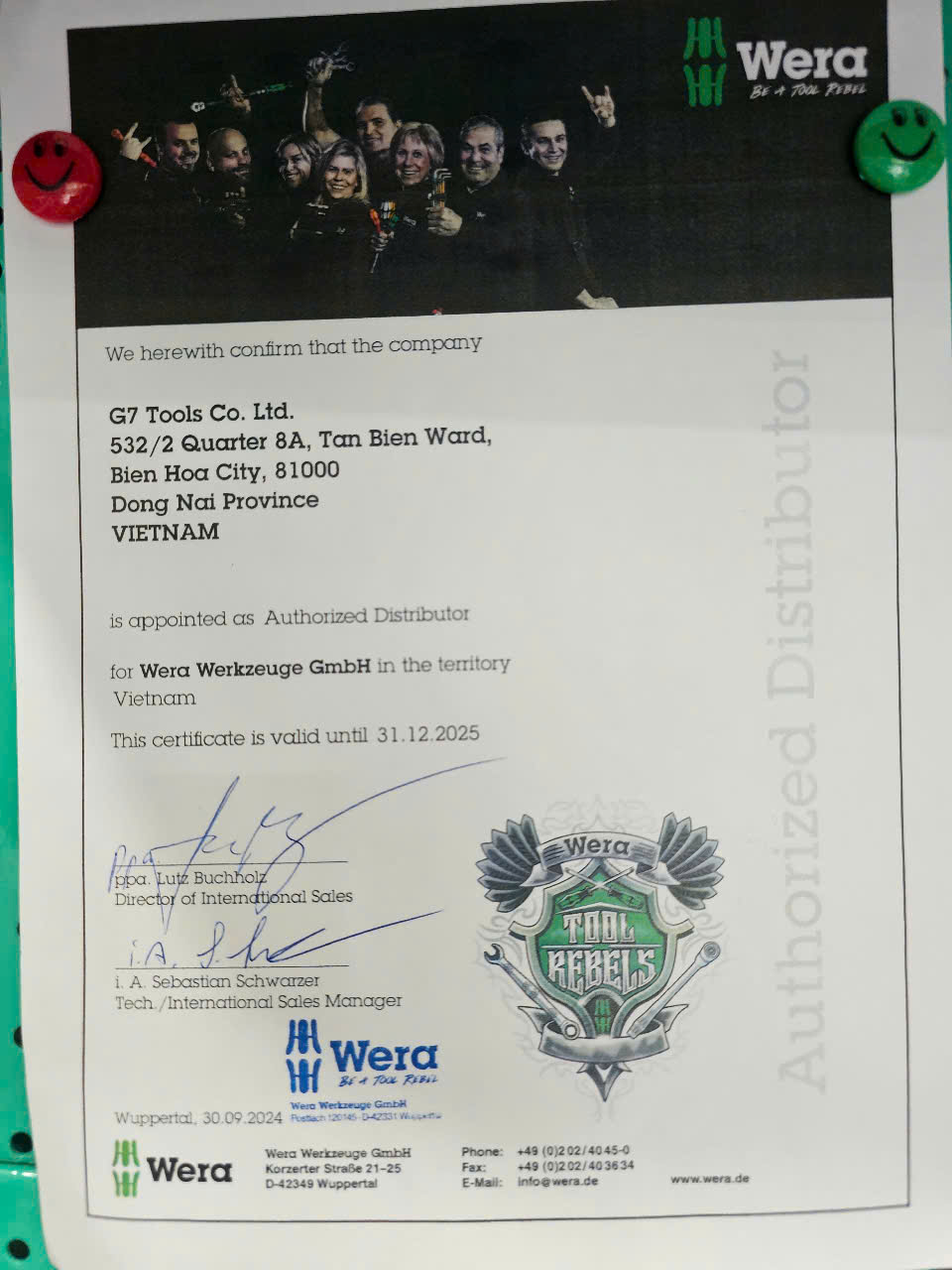 Để sở hữu các sản phẩm Wera VDE Insulated Screwdriver chính hãng với chất lượng tốt nhất, khách hàng có thể liên hệ G7 Tools – nhà phân phối chính thức của Wera tại Việt Nam. Chúng tôi cam kết cung cấp sản phẩm chính hãng, dịch vụ hậu mãi tận tâm và giá cả cạnh tranh tại Shop G7 Tools Saigon & Shop G7 Tools Hà Nội