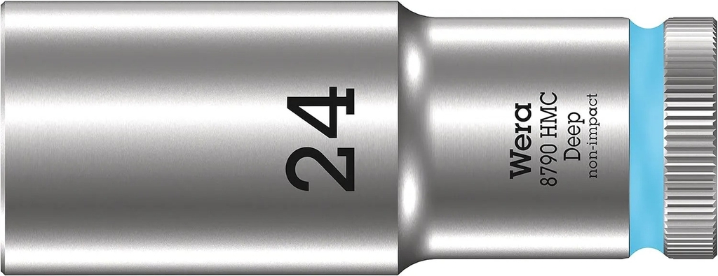 Khẩu Wera 8790 HMC Zyklop Deep Socket 1/2" được chế tác từ thép chrome vanadium & mạ chrome. Đánh số trên khẩu giúp nhận biết size dễ dàng.